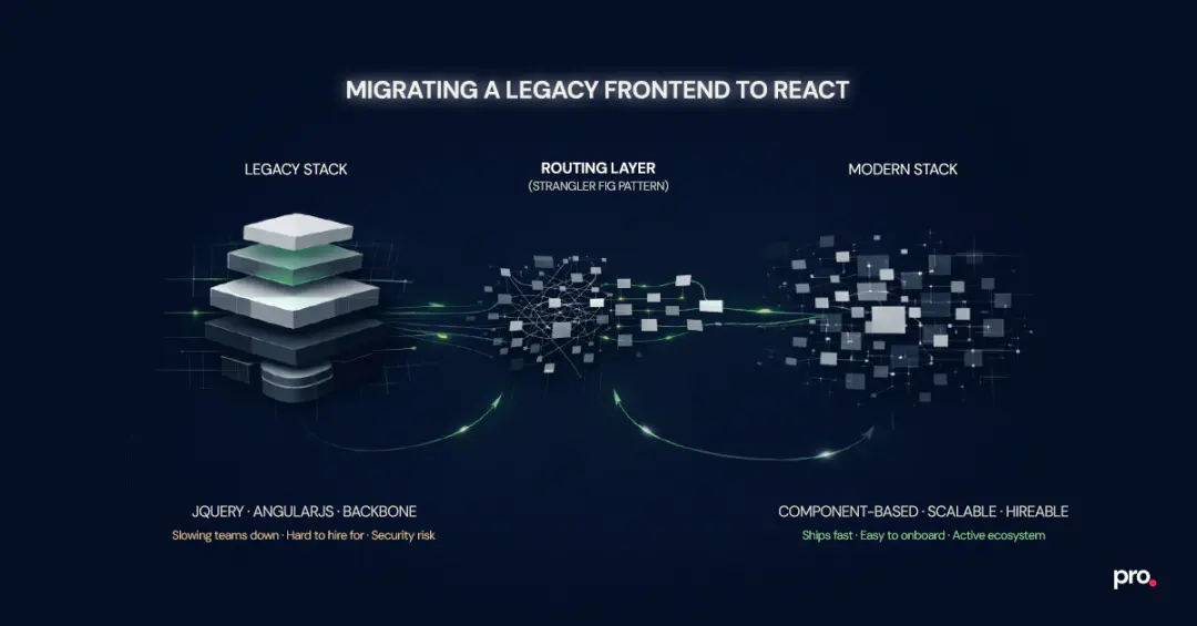 If two or more of these apply, the frontend modernization conversation is legitimate. If none do, the pressure to move is probably coming from developer preference, not business need. That distinction matters before you commit six to eighteen months of legacy code migration effort to this.